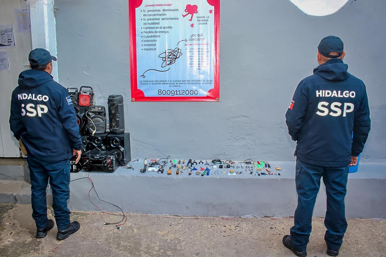 Derivado de ello, fueron decomisados objetos punzocortantes, desarmadores, memorias USB, diversos discos compactos, 30 bocinas, dos consolas de videojuegos, una televisión y tres libretas con notas.