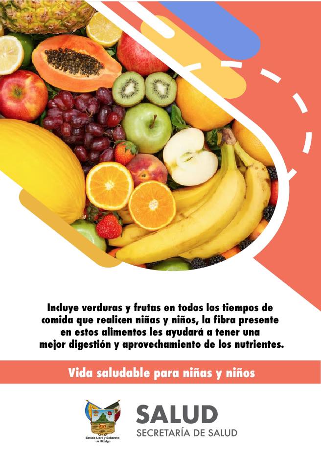 #SSH.- La Secretaría de Salud del Estado de Hidalgo, recomienda incluir frutas y verduras en todas las comidas de niños y niñas. La fibra en estos alimentos mejora su digestión y absorción de nutrientes. Una dieta equilibrada desde pequeños es esencial para su salud y desarrollo.