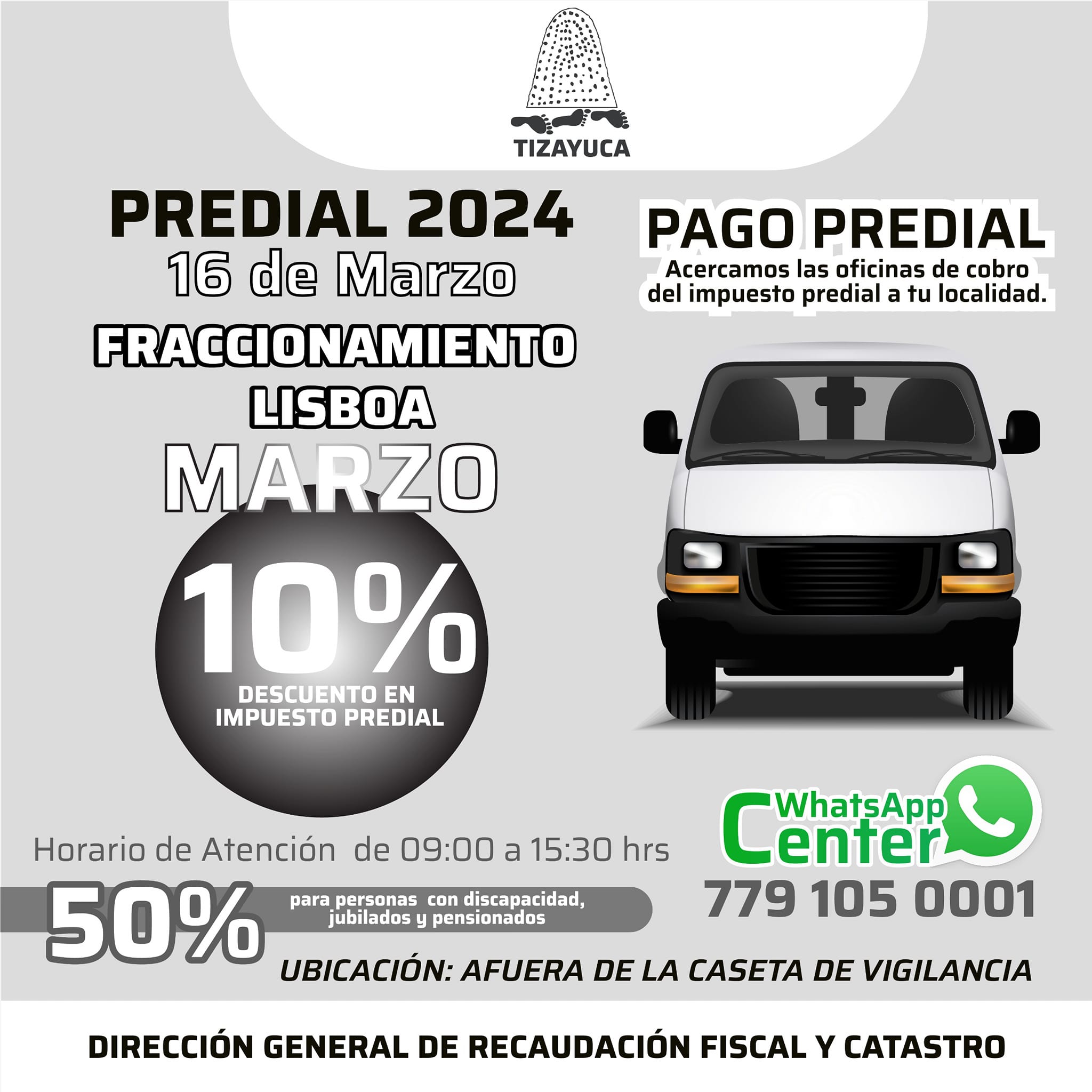 #Tizayuca, #Hgo.- El pago oportuno de impuestos permite la ejecución y mejoramiento de más obras y servicios en el municipio, por lo que la Dirección de Recaudación Fiscal y Catastro lleva a las localidades la Unidad Móvil de Cobro, para que se pueda pagar el impuesto predial y estar al corriente durante este año.