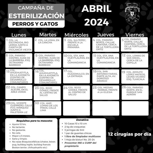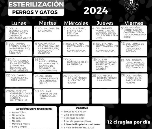 Presenta municipio de Tulancingo calendario de Campaña de Esterilización dirigida a perros y gatos / @TulancingoMpio >>>