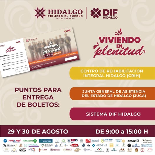El gobernador del estado de Hidalgo, Julio Menchaca Salazar, invita a ser parte de #ViviendoEnPlenitud, un evento pensado especialmente para ustedes. Habrá actividades diseñadas para disfrutar, compartir y crear momentos inolvidables en un ambiente de respeto y celebración. Es una oportunidad única para convivir y fortalecer los lazos comunitarios.